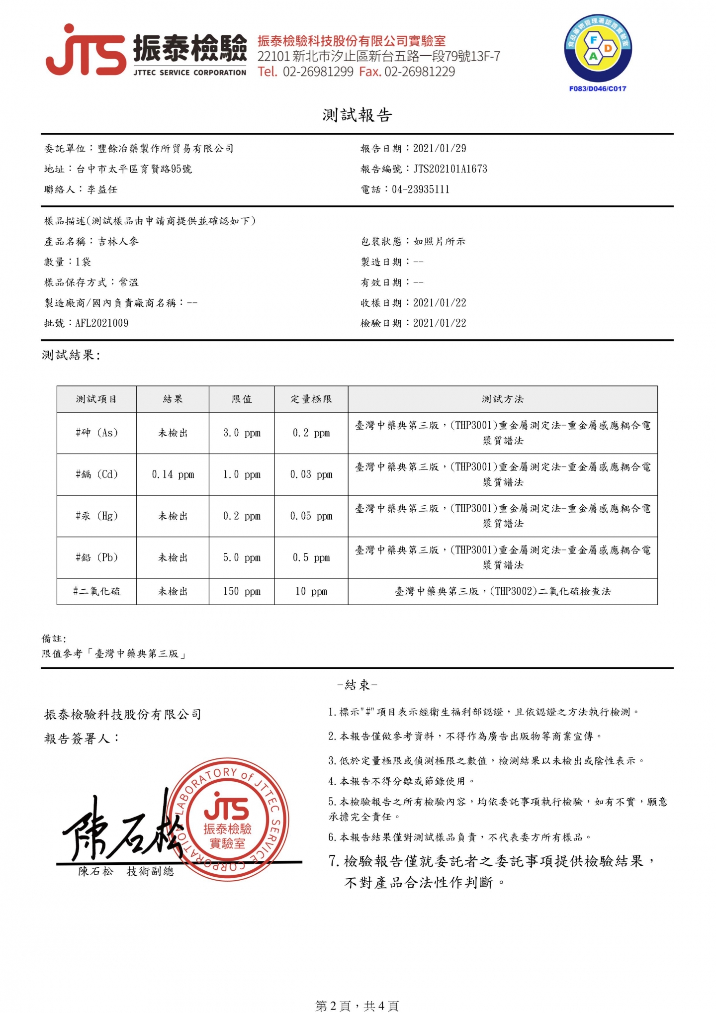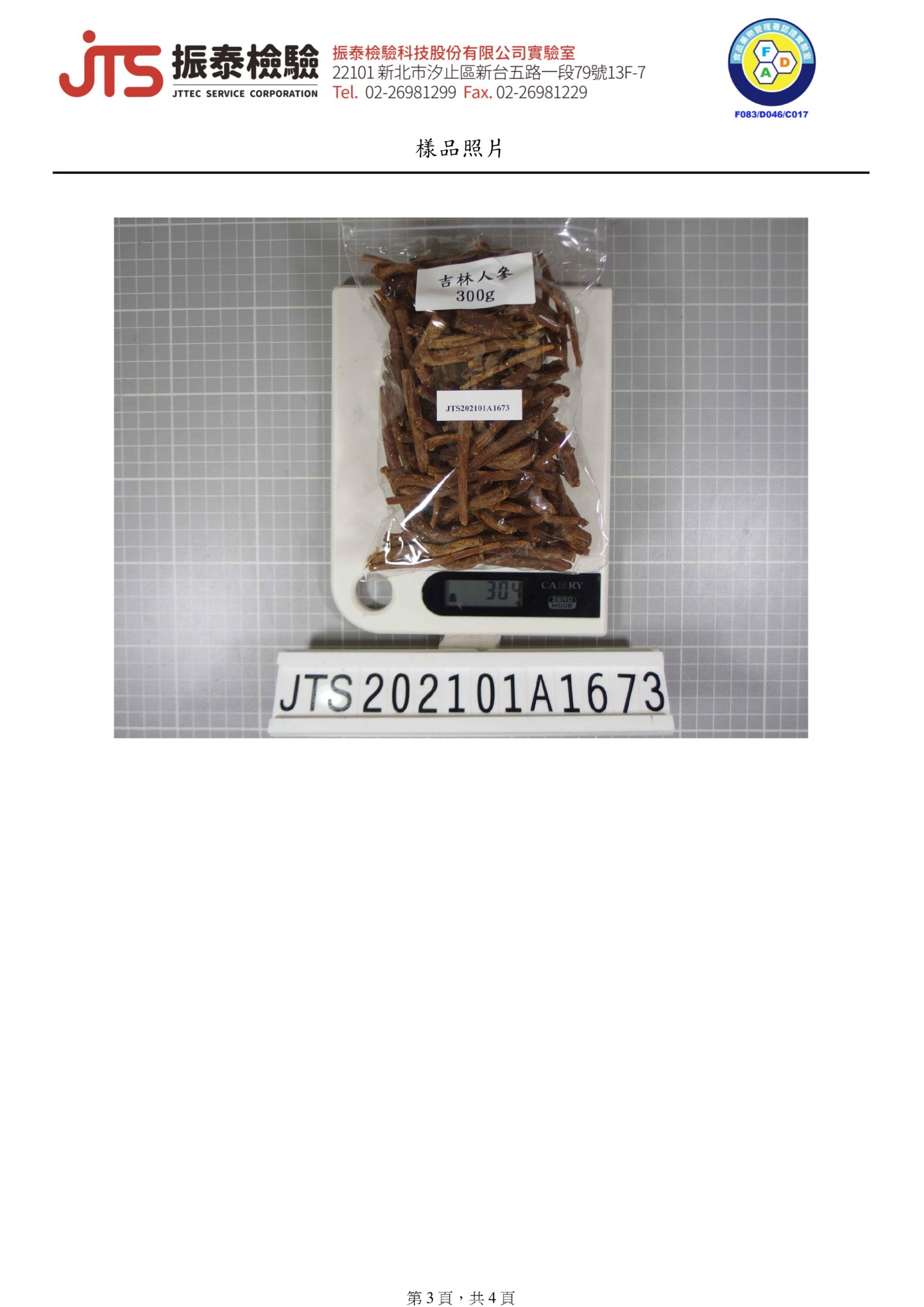 吉林人參檢驗報告