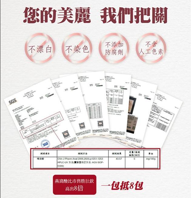 以珍稀會安燕窩為主,並加入超微米珍珠粉、鐵皮石斛及最熱門的活顏6大元素,包含賽洛美、蛋白聚醣、蠶絲蛋白、玻尿酸、玄米萃取物及天然莓果等營養素,是活顏養生的最佳聖品。珍貴的燕窩酸含量更是一般市售燕窩的8倍以上。